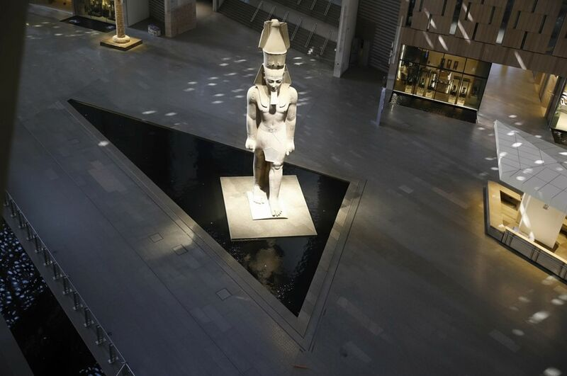 El Gran Vestíbulo del GEM. En su interior domina el espacio una imponente estatua de Ramsés II, de nueve metros de altura y más de ochenta toneladas de peso.
